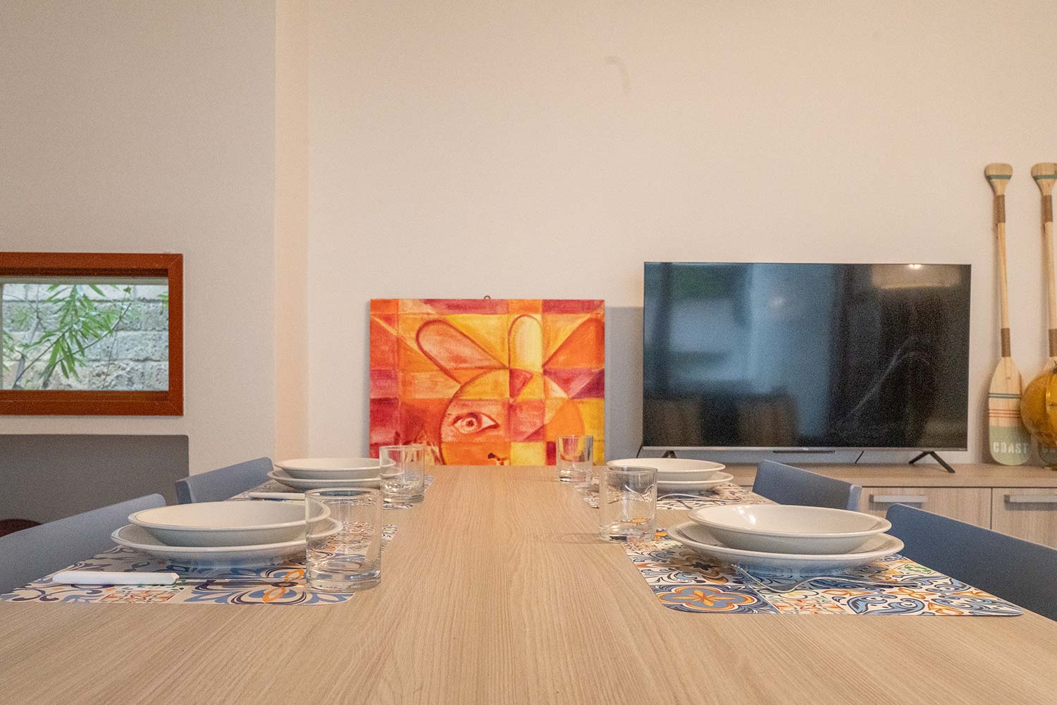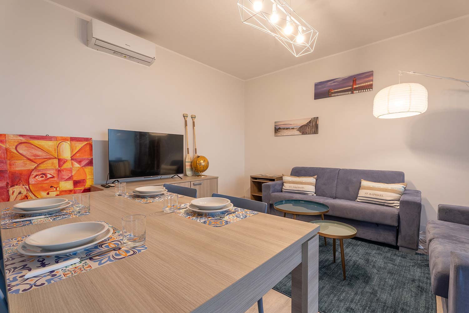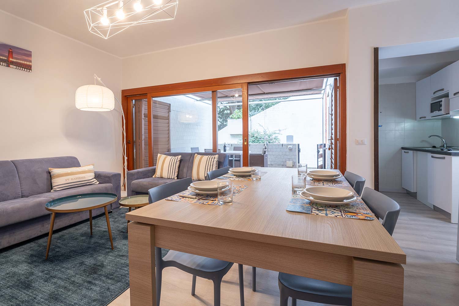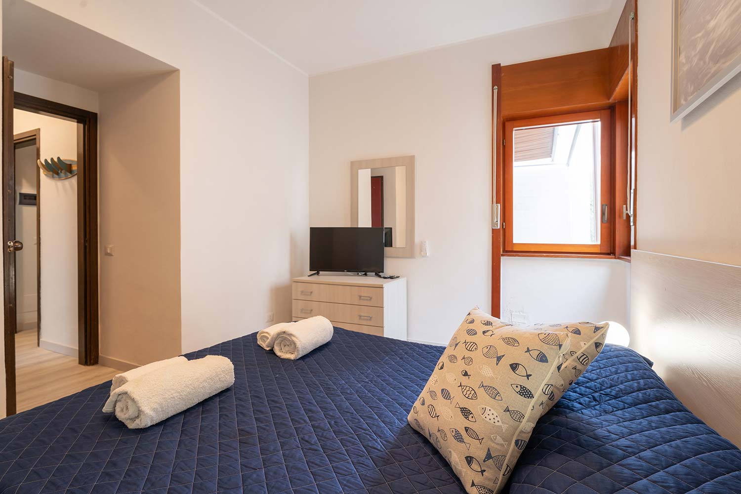 All'interno troverete due camere da letto matrimoniali, di cui una può essere configurata con due letti singoli per adattarsi alle esigenze delle famiglie. Il salone, arredato con un comodo divano, è il luogo ideale per rilassarsi dopo una giornata trascorsa al mare, mentre la cucina è completamente attrezzata con tutto il necessario per preparare i vostri pasti in totale autonomia. Troverete un forno termico, un forno a microonde, un tostapane, una caffettiera tradizionale e una vasta selezione di utensili, pentole e padelle.